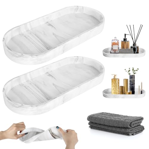 2 Pièces Plateau Salle de Bain, Blanc Silicone Plateau Decoratif avec Serviette Absorbante, Petit Plateaus pour Le Salon, La Chambre, Le Lavabo, La Baignoire Et L'Évier De Cuisine (Oval)
