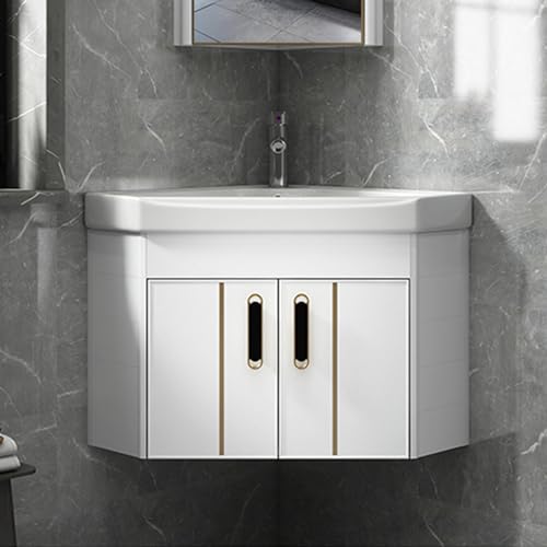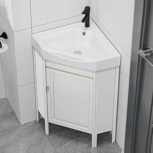 HCZKIUJY Petit Meuble-lavabo d'angle pour Salle de Bain, lavabo d'angle sur Pied, Vasque en céramique, Meuble-lavabo pour Petits espaces (White-47cm/18in)