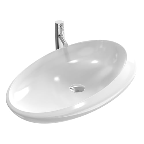 EMKE Lavabo ovale à poser, 70 x 43 x 18 cm, petit lavabo pour toilettes, salle de bain, en céramique, blanc