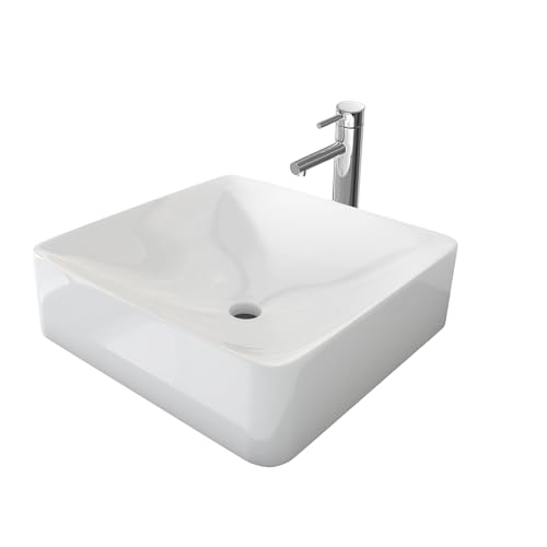 EMKE Lavabo à poser, 40 x 40 x 12 cm, petit lavabo pour toilettes, salle de bain, en céramique, rectangulaire, blanc