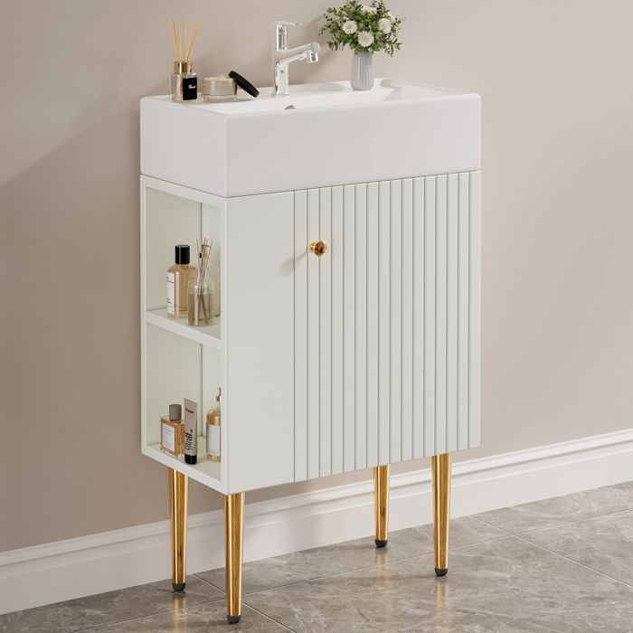 Petit Meuble salle de bain avec vasque -Meuble lavabo main wc et bassin intégré avec étagère -55 x 31 x 915 cmblanc