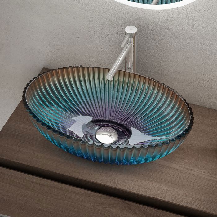 doporro Lavabo à Poser Vasque en Verre Bleu Lave Mains Ovale de Salle de Bains Petit Lave-Mains pour WC 505x35x145 cm Minerva04