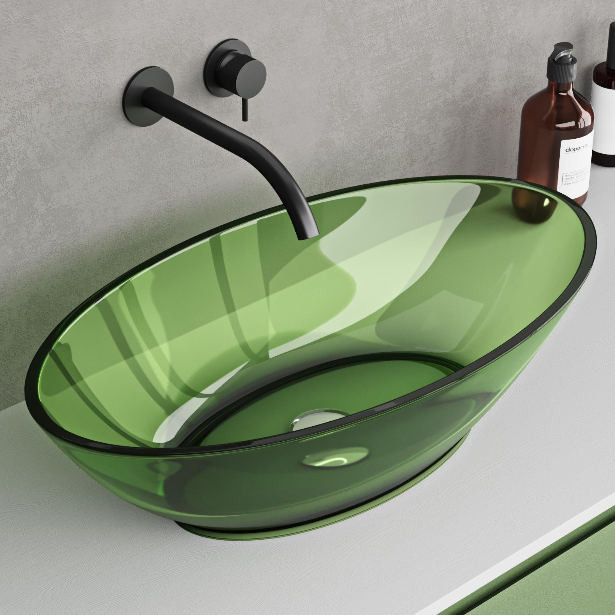 doporro Vasque à Poser Ovale Petit Lave Mains Lavabo 63x34x17cm Vert Pois en Résine Transparente Salle de Bain WC Invités Coloria02