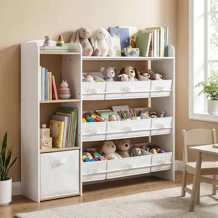 Petit Meuble De Rangement pour Jouets Enfants Étagère Montessori avec Paniers et Bacs Chambre d’Enfant Blanc