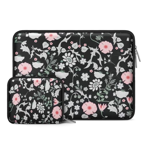 MOSISO Housse Ordinateur Portable 13-14 Pouces, Compatible MacBook Air 13,6 M4 M3 M2 M1/Pro 13/Pro 14, HP Dell ASUS Lenovo, Sac de Transport Carré Matelassé & Petit Housse, Petites Fleurs Élégantes