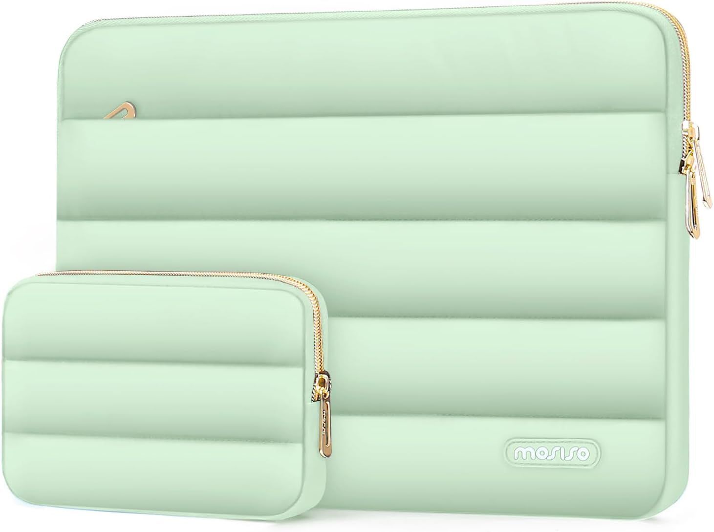 MOSISO Housse Ordinateur Portable Bouffi 13-13,3 Pouces, Compatible avec MacBook Air 13 13,6 M4 M3 M2 M1/Pro 13/Pro 14,HP,Dell,ASUS, Lenovo, Pochette Horizontal Polyester avec Petit Sac,Vert Mint
