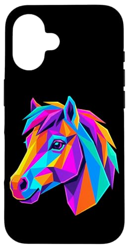 Cheval Miniature coloré Art géométrique Amoureux de Poney Petit Cheval Coque pour iPhone 16 Plus