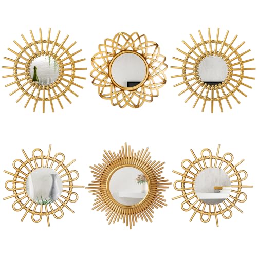 Namalu Lot de 6 miroirs Sunburst pour décoration Murale, Petit Cercle Soleil Espejos miroirs décoratifs à Suspendre pour entrée Artistique, décoration d'intérieur, Salle de Bain, Chambre à Coucher,