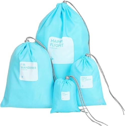 Amoyie Lot de 4 Sac à Cordon Imperméable, Pochette Rangement pour Voyage, Chaussures, Vêtements, Petit Organza Pochon Nylon, Sacs de Sport, Bleu