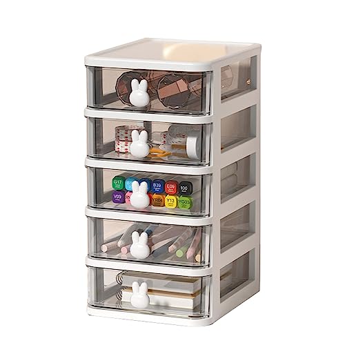Boîte de Rangement de Bureau en Plastique Transparent à Plusieurs Niveaux, Grande capacité, Poignée de Lapin, Petit Tiroir Organisateur pour Livres Stylos (Blanc, 5 niveaux (13,4