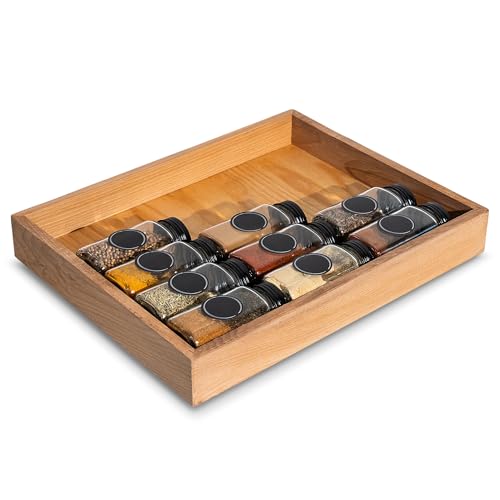 Creative Deco Plateau de Rangement en Bois 36 x 28 x 5 cm | Petite Boîte de Rangement en Bois de Hêtre | Plateau pour Épices, Petit-Déjeuner, Petits Objets | Organisateur Epices pour Tiroir de Cuisine