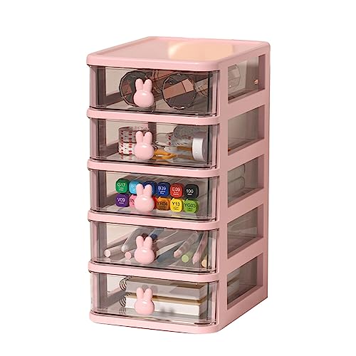 shenruifa Organisateur de Bureau Boîte de Rangement de Bureau à Plusieurs Niveaux en Plastique Transparent Grande capacité Poignée de Lapin Petit Organisateur de Tiroir (Rose, 5 Niveaux