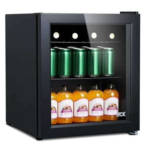 HCK 48L Mini Frigo Silencieux, 0-15°C Petit Réfrigérateur de Chambre, Porte Vitrée Transparente, Mini Bar pour Cuisine, Noir