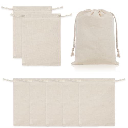 OFFCUP 10PCS Sachet en Coton Tissu, 25 * 30cm Sac Cordon Coton Sac Toile de Jute, Petit Sachet Cadeau Avec Serrage, Pochette Tissu Cordon Pochettes à Bijoux pour Mariage Bonbons Lavande Fête