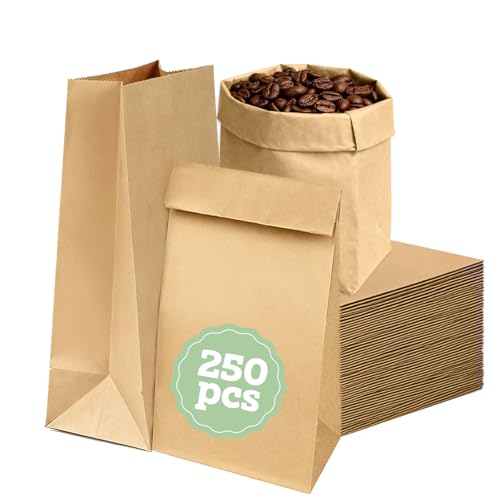 Crisgus 250 Pièces Petit Sac Papier Kraft 9x5,5x18 cm, Sachet Papier Marron, Sachet Kraft Alimentaire Recyclable, Sac Cadeau Petit Cadeau pour Noël, Avent, Mariage, Fête, Bonbons, épaissir, remplir