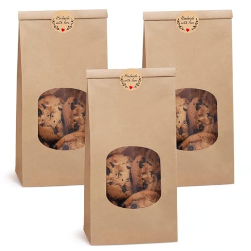 25 Sachets en Papier Kraft avec Fenêtre, Petits Sacs en Papier Cadeau pour Noël,12x6.5x24.6cm, Petit sac à pain, Sachet Biscuit, pour Bonbons Pâtisserie et Friandises Sachet Kraft avec Fermeture