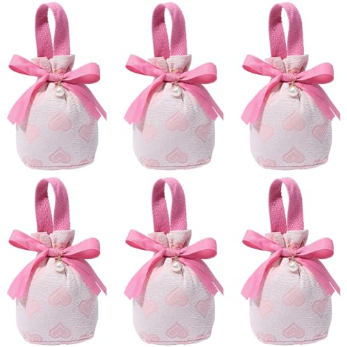 CABODYALS 6 Sachet Cadeau à Cordon avec Poignées Pochettes à Saveur de Fête Rose Bonbon Petit Cœur Imprimé Perle Sac de Rangement en Tissu Sachet Vide pour Cadeau de Mariage Emballage de Noël