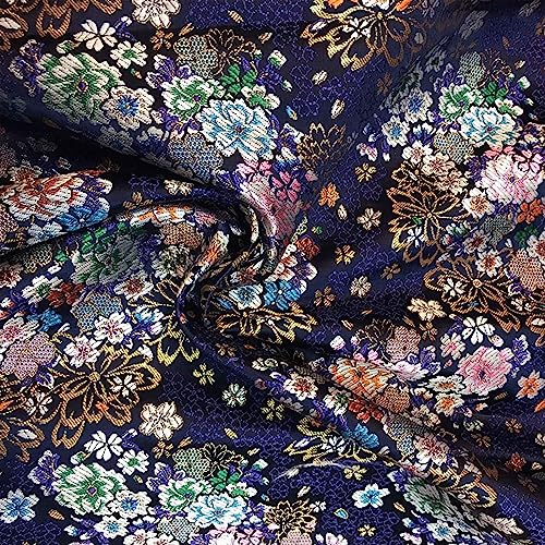 Tissus De Soie Tissu Brocart Tissu Jacquard en Soie Brocart satiné Motif Floral Japonais élégant Petit Kimono forêt Pastorale Sachet tissé Or Haute densité Tissu Fait Main 75X50cm, Bleu