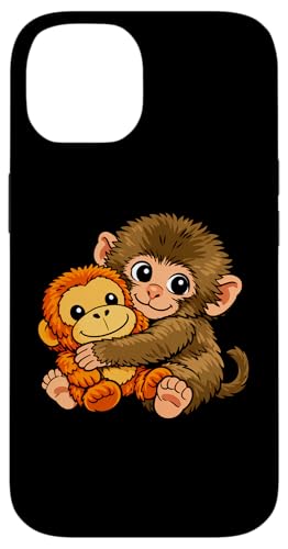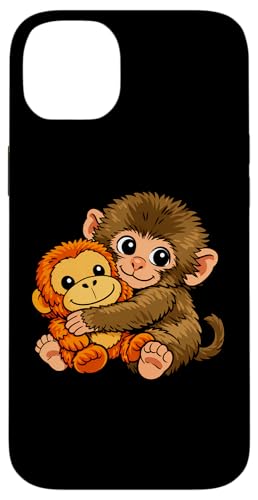 Mignon Petit Singe Punch bébé Macaque Tenant Peluche Jouet Coque pour iPhone 14 Plus