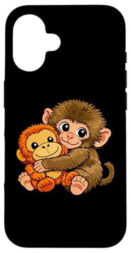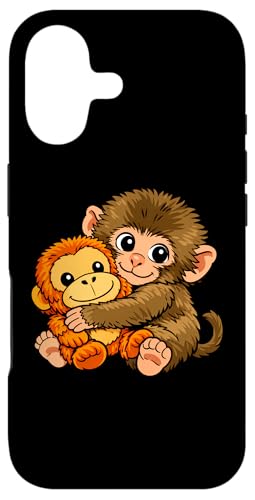 Mignon Petit Singe Punch bébé Macaque Tenant Peluche Jouet Coque pour iPhone 16 Plus