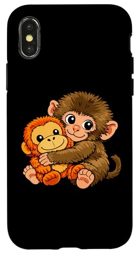 Mignon Petit Singe Punch bébé Macaque Tenant Peluche Jouet Coque pour iPhone XR