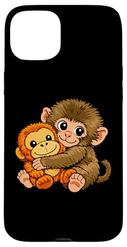 Mignon Petit Singe Punch bébé Macaque Tenant Peluche Jouet Coque pour iPhone 15 Plus
