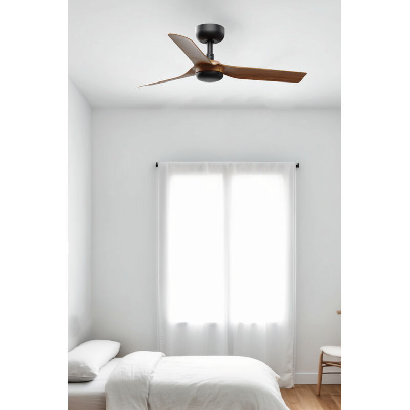Faro Barcelona - Faro Mini Punt Petit ventilateur de plafond à 3 pales, noir mat, noyer, système intelligent Tuya
