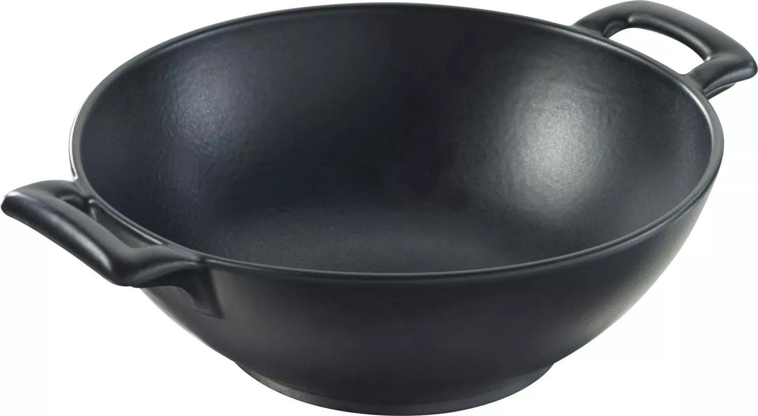 AMT Gastroguss AMZN-I-620-Z20B - Petit wok - 20 cm de diamètre - 6 cm de haut - Manche amovible - Compatible induction - Revêtement anti-adhésif Lotan® - Poêle en fonte d'aluminium