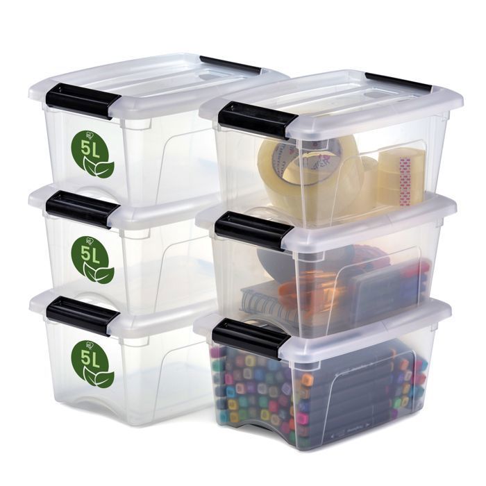 Iris Ohyama Petite Boites de Rangement Plastique recyclé 5L Lot de 6 Transparent NTB-5