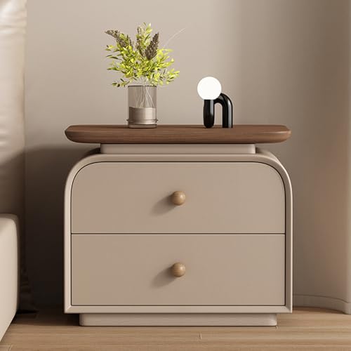 Table de nuit en bois ivoire à profil incurvé - Petite commode à tiroirs pour chambre à coucher et salon (kaki 40 x 40 x 48 cm) - Solution de rangement élégante et fonctionnelle