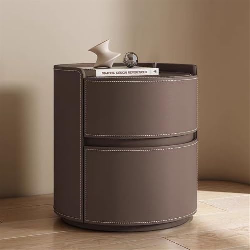 Table de chevet ronde moderne en bois massif avec finition en cuir pour chambre à coucher, petite commode avec 2 tiroirs