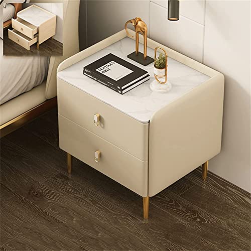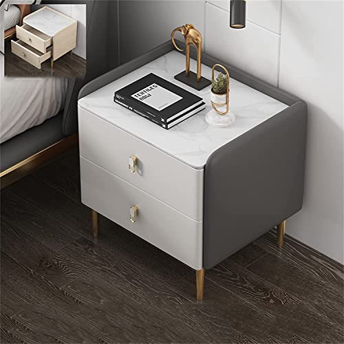 JCNAGXY Petite Table de Chevet avec 2 tiroirs, Table de Chevet pour Chambre à Coucher Grise, Meuble de Chevet en Ardoise de Luxe Clair en pin, Commode en Cuir, Meuble de Rangement pour Taille : 50 x