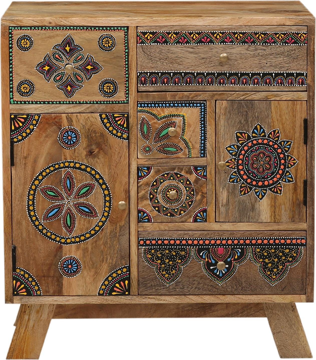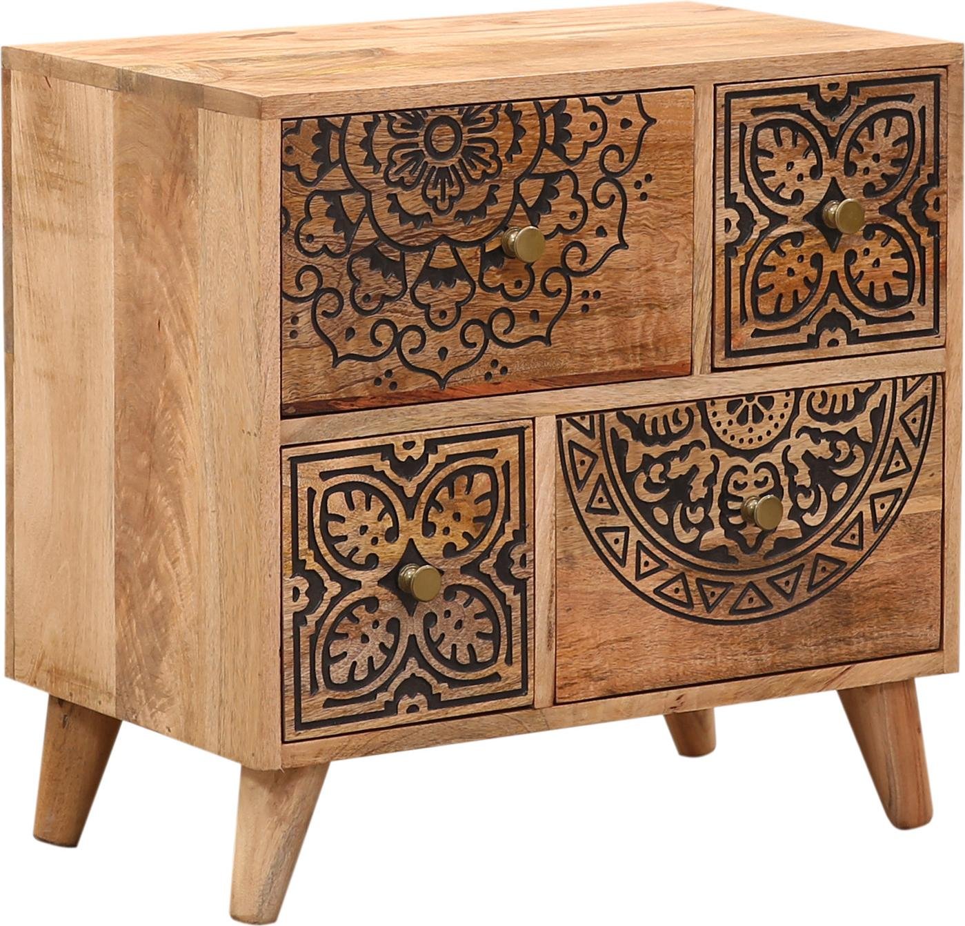 Marrakech Boho Style Table de nuit petite commode avec tiroirs en bois 55cm de haut | Table d'appoint pour chambre à coucher ou chambre d'enfant comme meuble oriental | Tables de nuit scandinaves petites Narjo