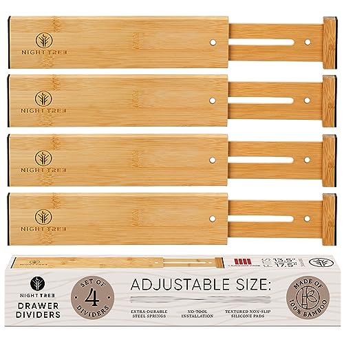 Night Tree Séparateurs de tiroir extensibles en bambou – Séparateurs de tiroir à ressort pour vêtements, ustensiles de cuisine, salle de bain et commode – Séparateurs en bois pour tiroirs [45,7 cm à