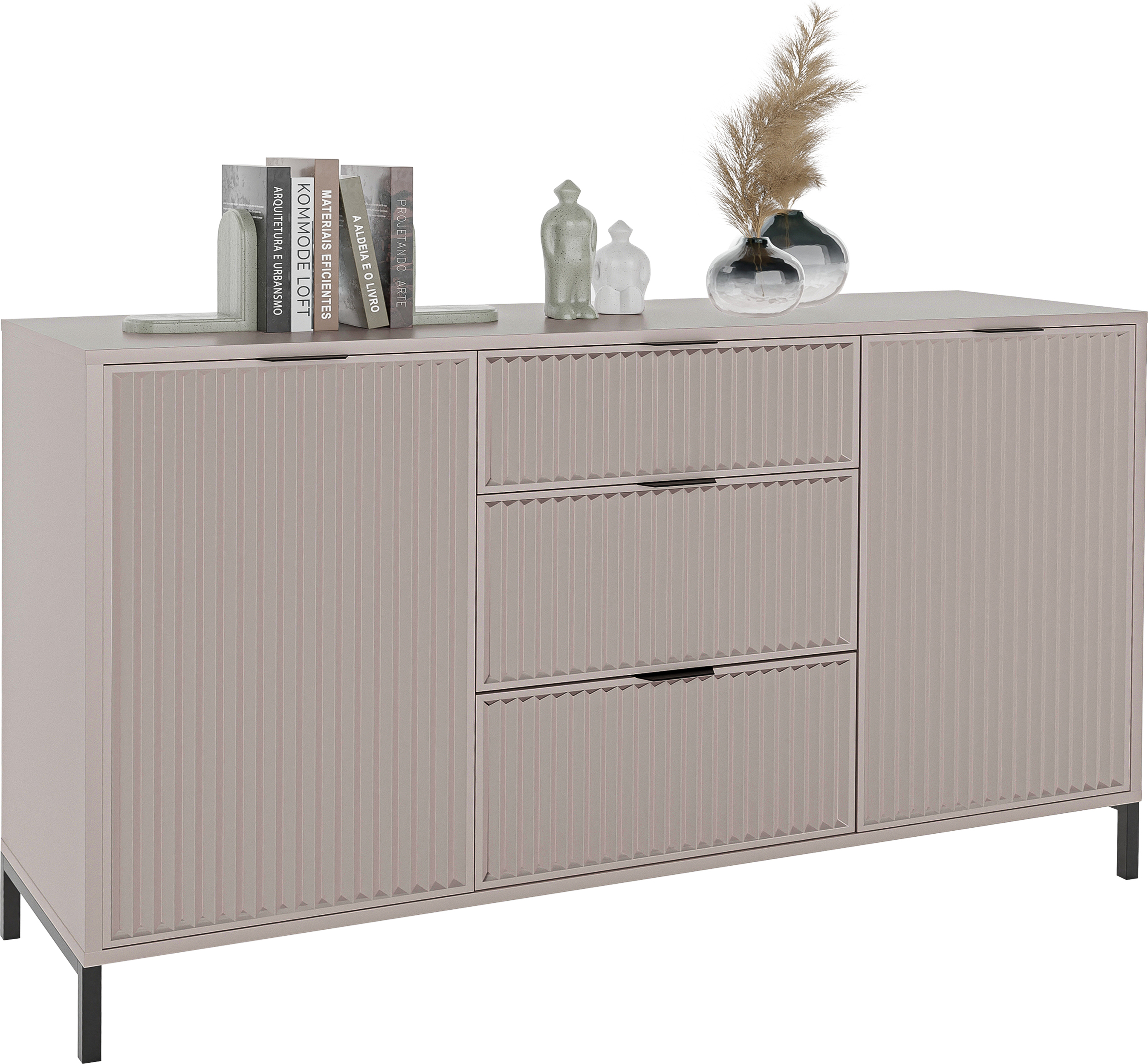 GrekPol Commode Wave petite armoire de rangement avec 3 tiroirs et 2 portes Espace de rangement polyvalent Commode Structure métallique Armoire à tiroirs Sideboard Couleur : Cashmere