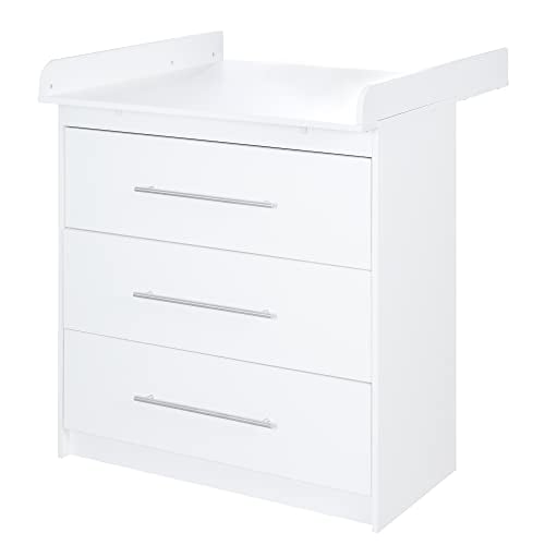 roba Commode Étroite Maren + Plan à Langer Amovible - 3 Tiroirs - Poignées Métalliques - Bois Blanc