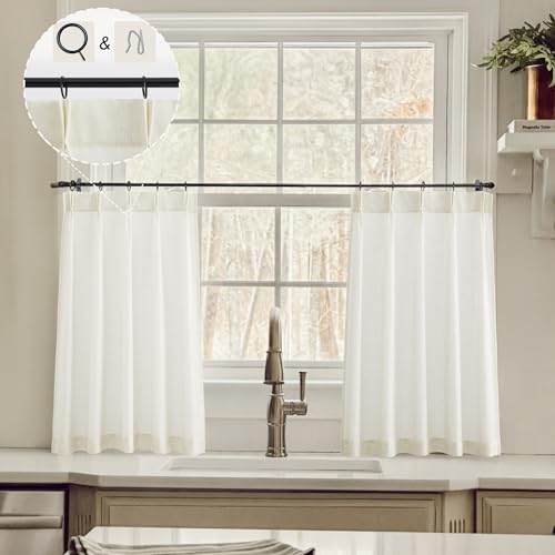LIMON HOME Lot de 2 Rideaux de Cuisine à Plis pincés pour Petite fenêtre de Cuisine en Lin, crème café, 61 cm de Long