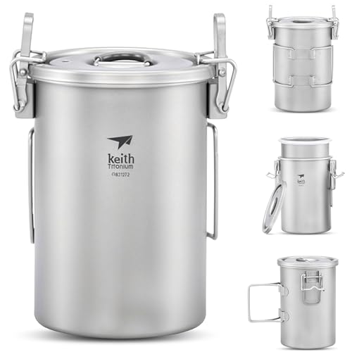 Réchaud Multifonction En Titane Keith, Ensemble De Cuisine De 900 Ml Avec Couvercle, Petite Poêle De Camping Avec Poignée Pliable Pour Une Manipulation Facile, Idéale Pour La Randonnée et Le Camping