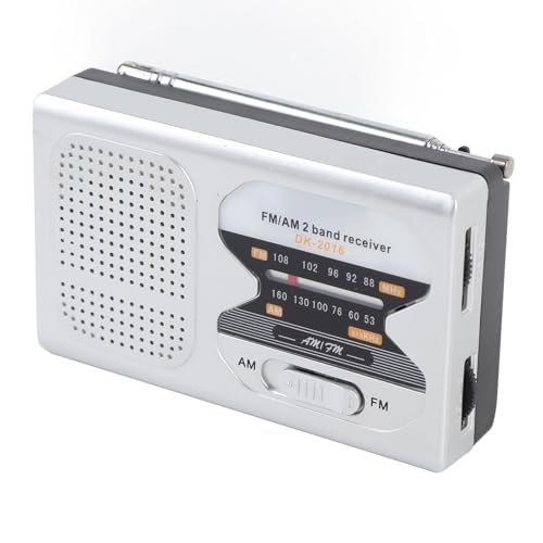 Vikye Radio Portable AM / FM, Petite Radio Portable: Haut-Parleur intégré, Antenne Télescopique, Prise D'écouteurs, Lecteur de Musique, Compacte avec Batteries (DK-2013) (Argent Rouge)