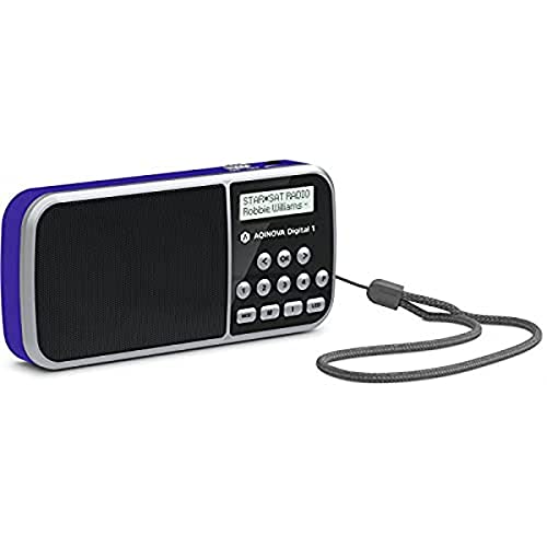 AQINOVA Digital 1 Radio Portable Dab+/FM (écran LCD, mémoire des favoris, Touches de sélection directe, Prise Casque, USB, AUX-in, Lampe de Poche LED, Batterie remplaçable, 1 W, Petite) Bleu