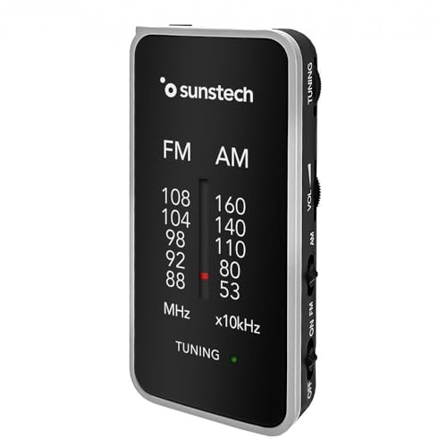 Sunstech RPC6 Radio de Poche FM/Am Petite Radio Portable Analogique Tuner Radio Multibande Fonctionne avec 2 Piles AAA Couleur Argent