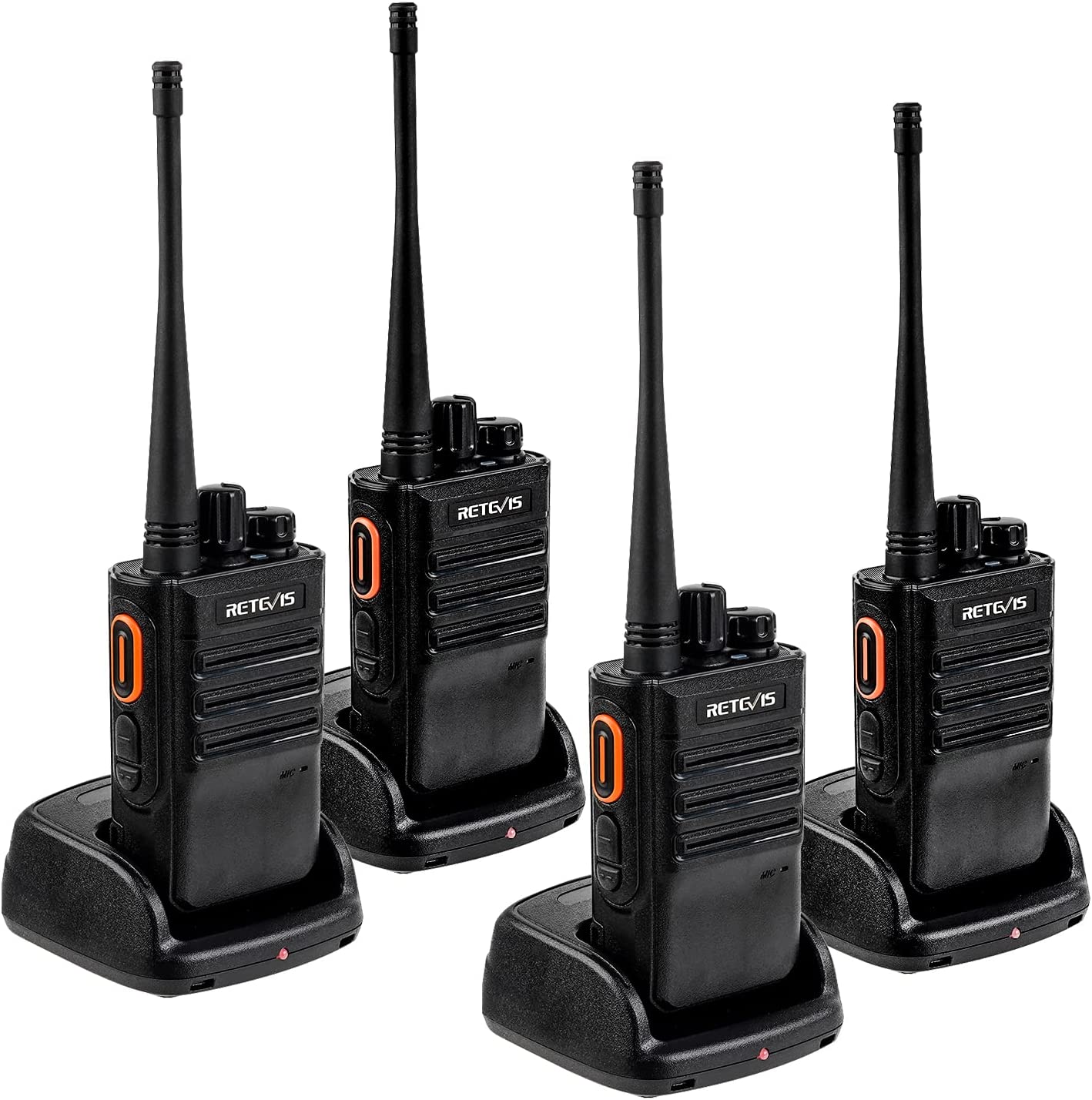 Retevis RB646 IP67 Walkie Talkie étanche, PMR446 Petite radio portable bidirectionnelle, VOX Alarme d'urgence Chargeur USB, Radio portable pour les chantiers école (Noir, 4 pièces)