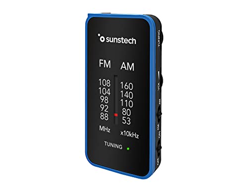 Sunstech RPC6 Radio de Poche FM/Am Petite Radio Portable Analogique Tuner Radio Multibande Fonctionne avec 2 Piles AAA Bleu
