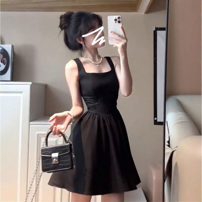 Robe Noire à Bretelles Style Hepburn Femme Été Élégante Coupe Courte pour Petite Taille