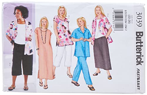 Butterick Patterns b3039 Patrons 22 W Femmes de Petite Chemise, Top, Tunique, Robe, Jupe et Pantalon pour Femme, Blanc