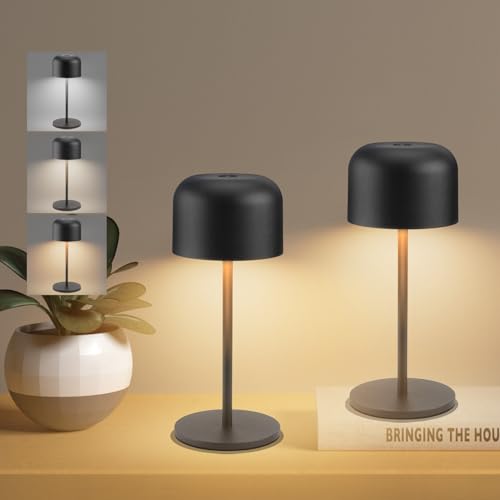 Lampe de chevet Tactile Sans fil Lot de 2,Petite Metal Lampe Led Rechargeable pour table bureau la chambre salon&exterieur,a pile 5200mah(7-40h),IP54,pour enfant fille ado adulte,3 intensité,blanche