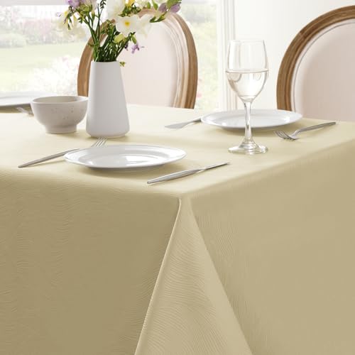 Softalker Petite Nappe rectangulaire 100x140 cm Anti Taches Nappe Impermeable nappes à Motif ondulé Jacquard Moderne Nappe Beige Tissu pour l'extérieur, Anniversaire, Noel, Mariage, Table Basse