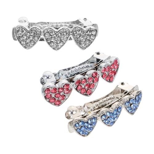 Générique Lot de 3 Barrettes Cœur en Alliage avec Pierre Brillante pour Chien Accessoires Cheveux pour Animaux Décorations Petites Pinces à Cheveux pour Chiots Usage Quotidien et Fêtes