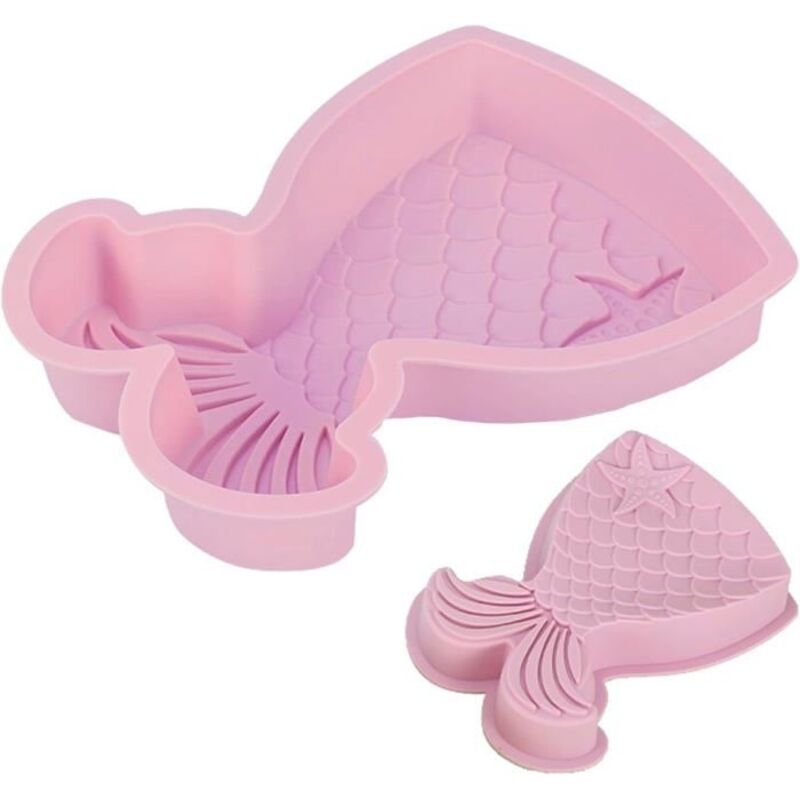 Moule à Gâteau Sirène,Rose Grand Mould Silicone Pate a Sucre Moule Gateau 3D Moules Forme Queue Sirène Grand Fondant Moule
