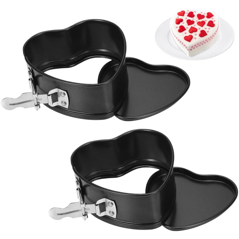 Lot de 2 Moules à Charnière en Forme de Cœur 10 cm, Mini Moule à Gâteau avec Revêtement Antiadhésif, Petits Moules à Gâteau avec Fond Plat pour la